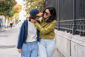 Young Hispanic woman in straw hat and denim shirt sitting on wooden ledge outdoors