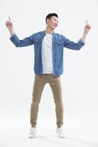 Chinese father giving high five to Chinese son while kneeling near boxes at home