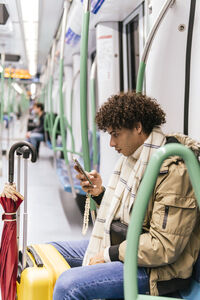 Black woman with vitiligo using smartphone sitting in car during daytime