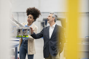 African American woman with curly hair standing with arms crossed near machine in coffee roastery