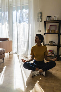 Black man with headphones looking away sitting in front of microphone during live streaming at home