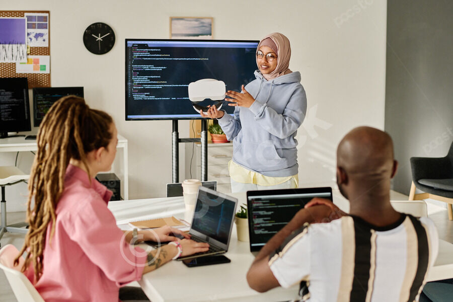 Black woman taking tray with cookies out of oven while standing in home kitchen