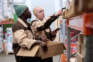 Hands of Hispanic woman getting back visa application form with approved stamp by caucasian consular officer on table