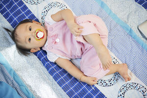Vietnamese mother reading book with her daughter while sitting together on sofa in living room at home