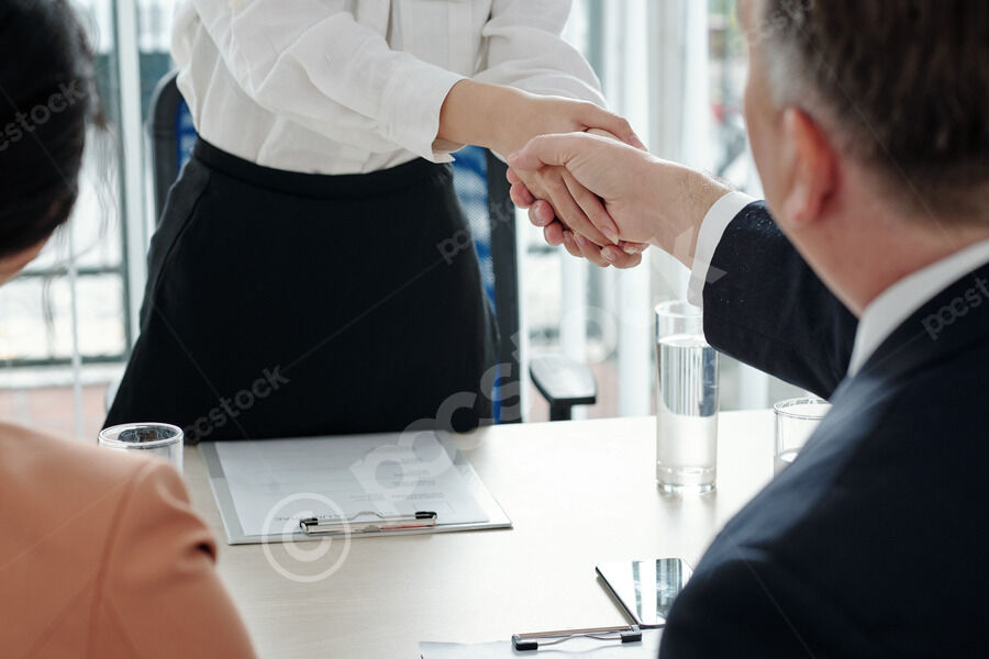 Asian male and female garden workers standing with arms crossed among blooming flowers in greenhouse