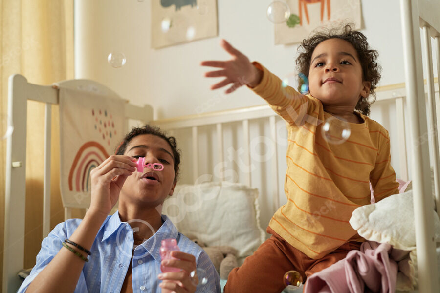 Black female teacher and caucasisan female students sitting at table with papers and colors in workshop
