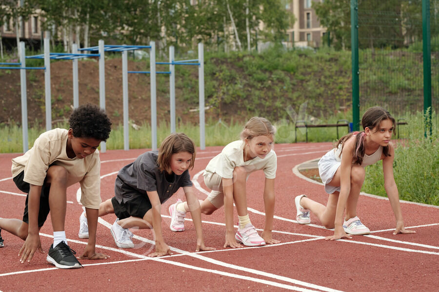 Black boy and mixed-race female teenager holding badminton rackets and looking away standing near father clapping hands in the backyard on sunny day