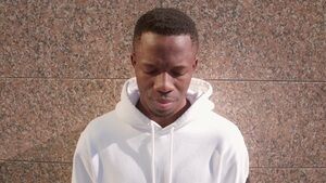 Black male agro-engineer wearing protective suit holding and checking spinach leaves standing in greenhouse