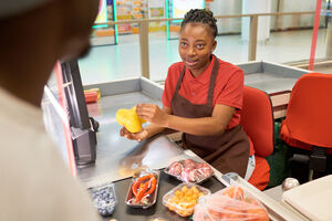 Midsection footage of Black man and caucasian woman jogging around city on sunny day