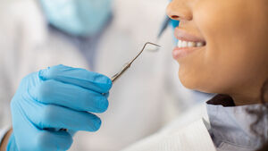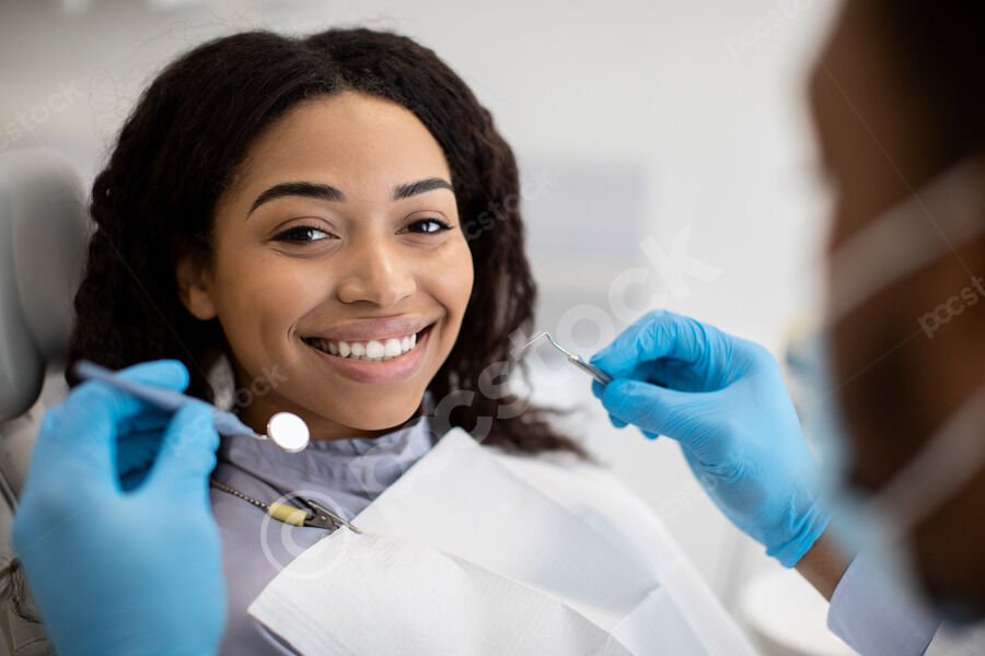 Black woman taking bottled milk from shelf while standing with shopping cart in supermarket