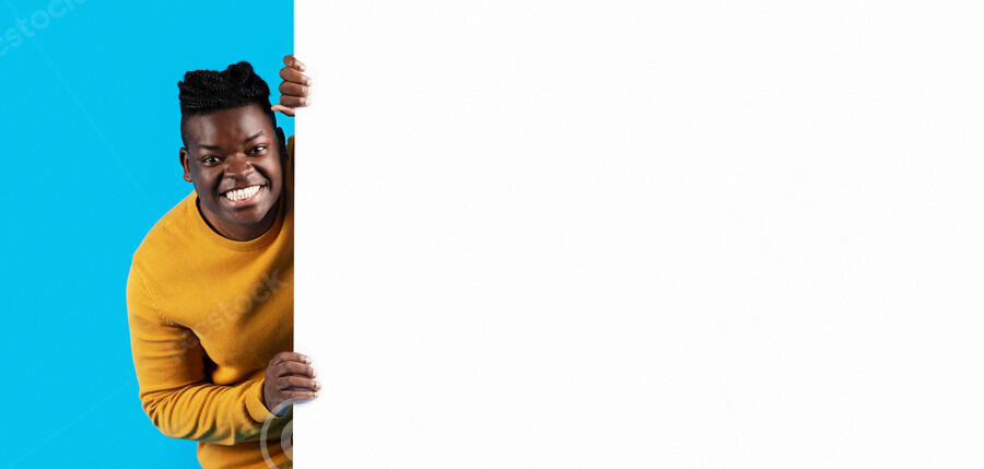 Cheerful Black girl showing smartphone with blank screen sitting on sofa beside parents in living room at home