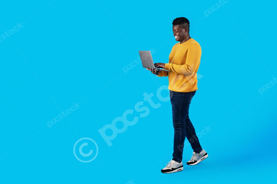 Black family using laptop together holding credit card doing online shopping while sitting on sofa in living room at home