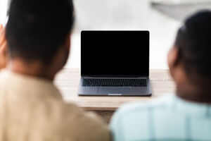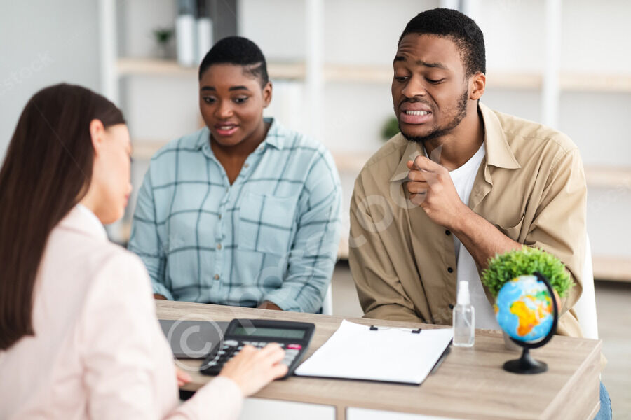 Hispanic woman looking inside empty fridge standing in kitchen at home