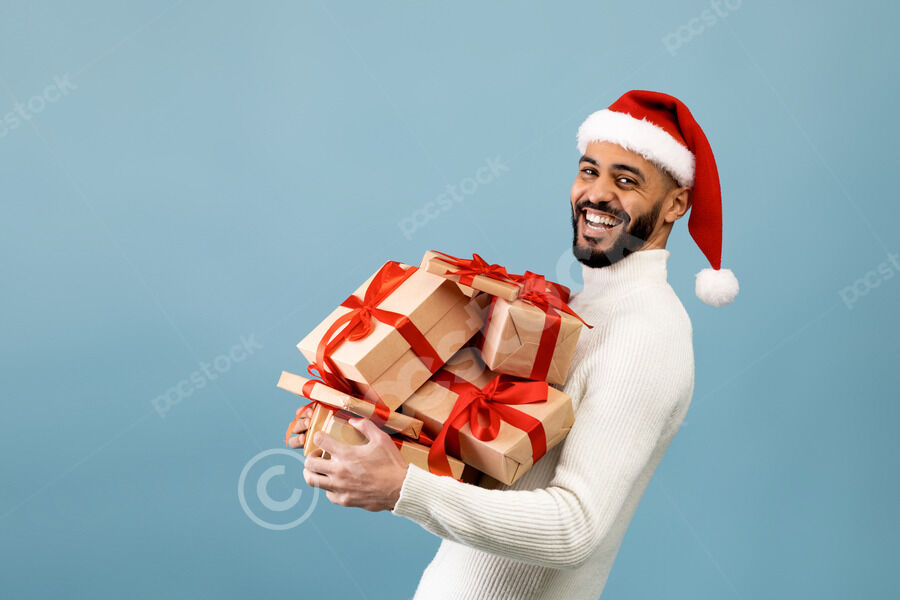 Shocked Hispanic woman touching head standing beside empty fridge in kitchen at home