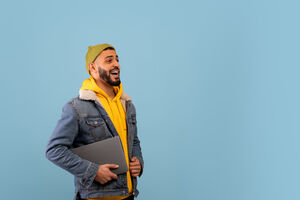 Hispanic woman pulling lip down showing her gums standing against blurred background