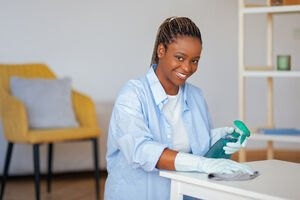 Hispanic female teenager wearing apron cooking rice while standing at kitchen counter at home