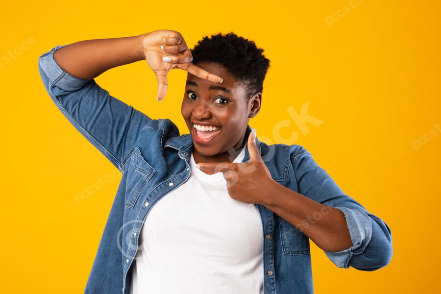 Cheerful Black couple showing okay sign while standing together in front of purple wall in studio