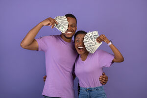 Smiling Black businessman taking key from valet sitting in car in parking area during daytime
