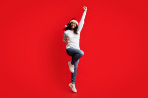 Black woman with curly hair covering eyes with slices of cucumber in front of mirror at home
