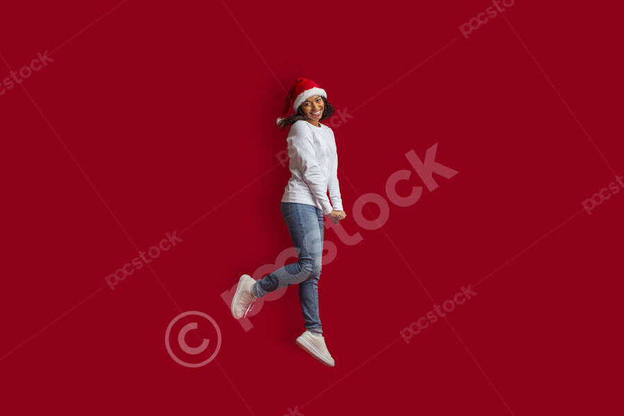 Smiling Black woman with curly hair wrapped in white towel applying moisturizing cream on face at home