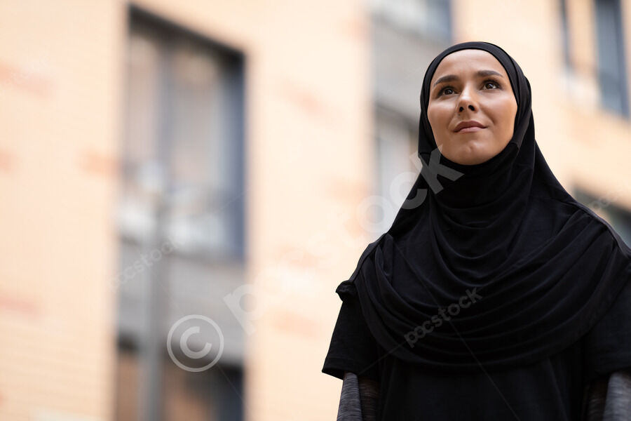 Black woman looking away holding paper bag with groceries while standing at table in kitchen at home