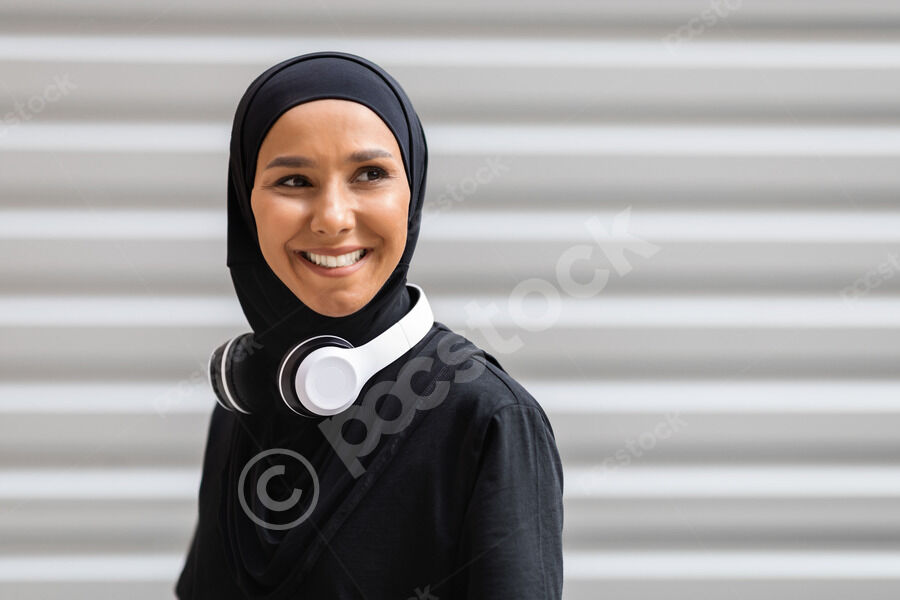 Black female tutor wearing eyeglasses and headphones recording video tutorial using smartphone gesturing hands while sitting at table with notebook in kitchen at home