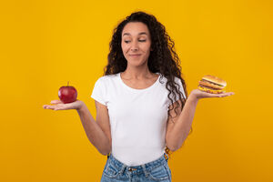 Smiling Black woman wearing Santa hat dancing against red background in studio