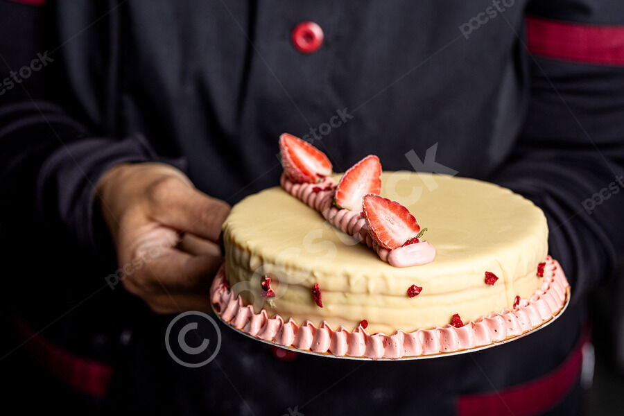 Mixed-race female teenager with curly hair and vitiligo wearing apron standing at counter in cafe