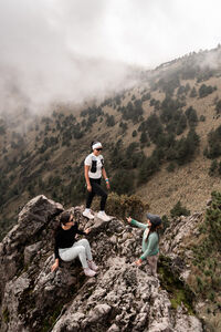 Group of Black women sitting on concrete staircase in city during daytime