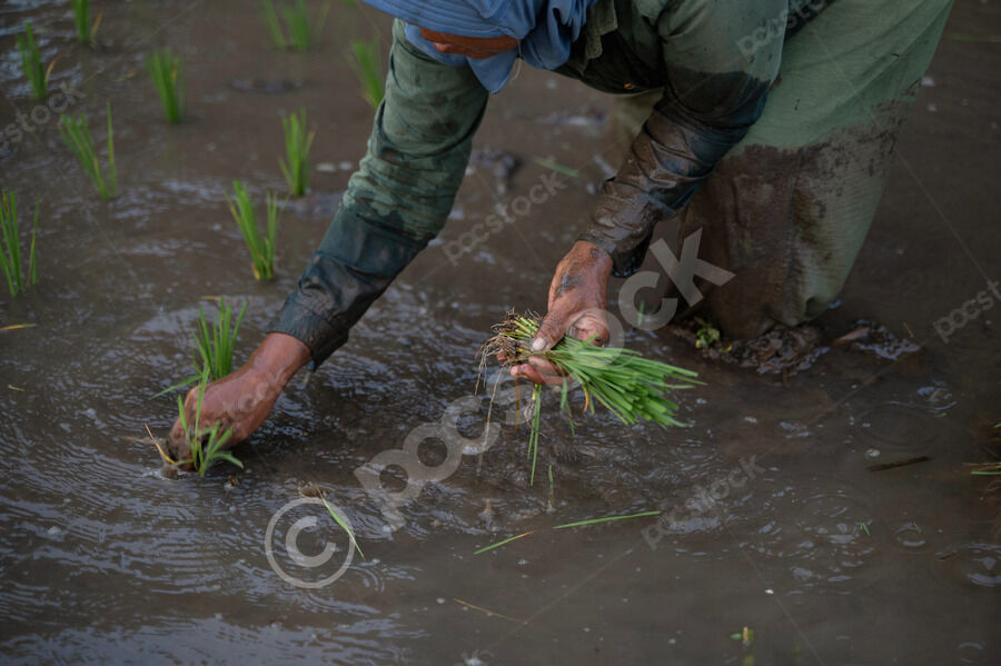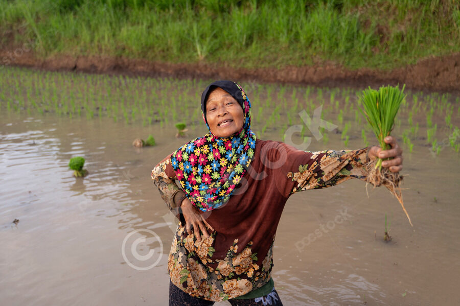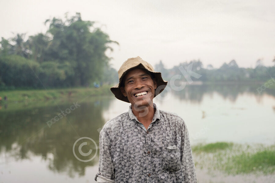 Smiling Asian woman in blue shirt and blue jeans standing in park during daytime