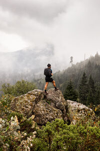 Hispanic female hiker wearing hat looking away while standing in rainforest during daytime