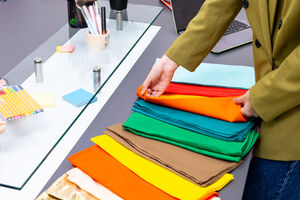 Hands of senior Middle Eastern craftsman restoring carpet while sitting at table in workshop