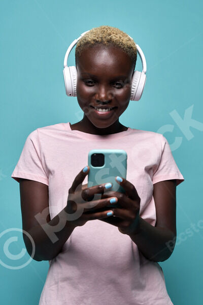 Smiling Hispanic woman sitting on exercise ball while recording video at home
