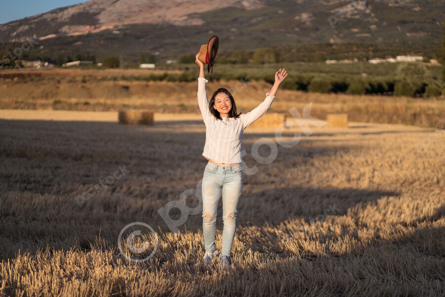 Smiling Indian woman and caucasian boyfriend sitting together on dry field