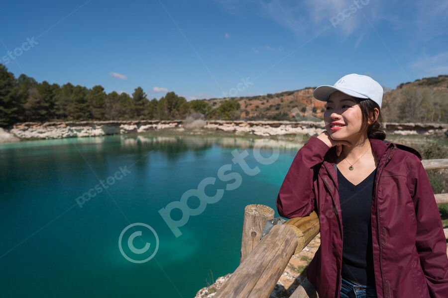Asian woman in casual wear looking away standing in an old town during travel on a sunny day