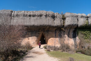 Hispanic woman in mustard sweater and sunglasses looking away smiling while walking in narrow street during daytime