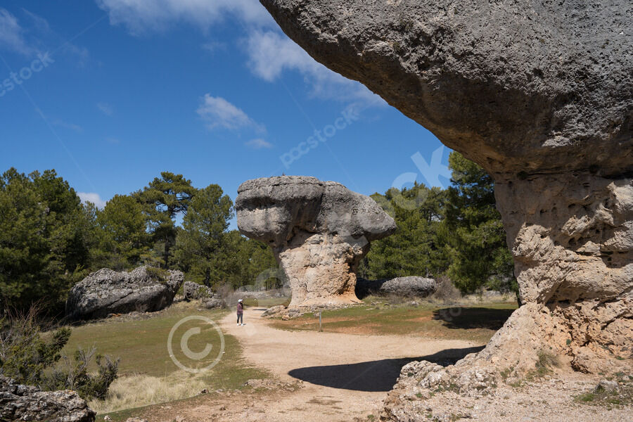 Chinese woman wearing cap taking picture using smartphone while walking along traditional wooden houses in countryside during daytime