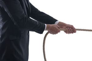 Hands of Middle Eastern businessman putting money bill on wallet standing against white background in studio