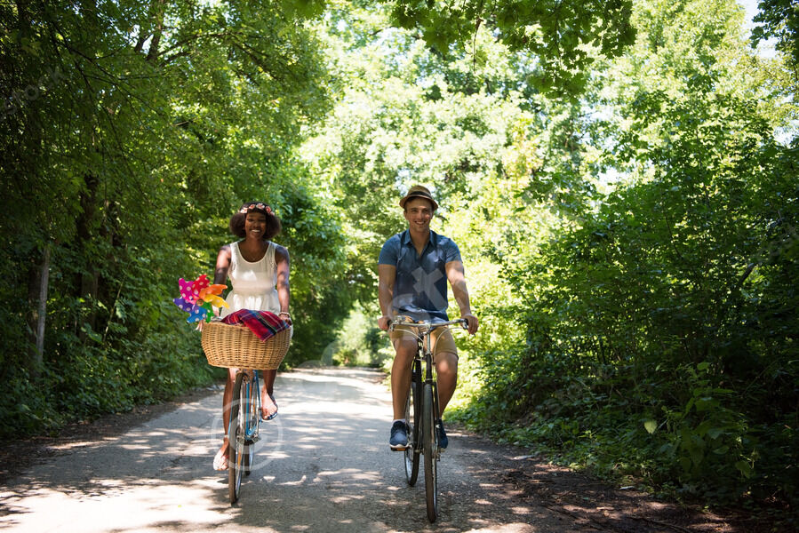 Cheerful Middle Eastern man and caucasian woman having fun playing video game while sitting on sofa at home