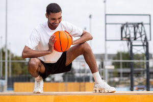 Smiling Asian male tattoo artist wearing cap and latex gloves covering chair with plastic preparing for tattoo session in studio