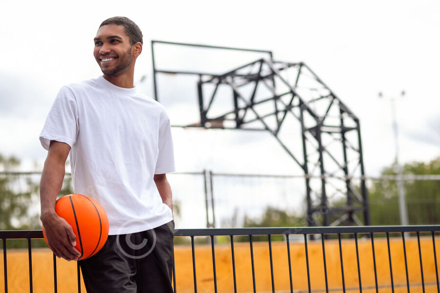 Mixed-race male patient with beard looking up sitting in dental chair in clinic