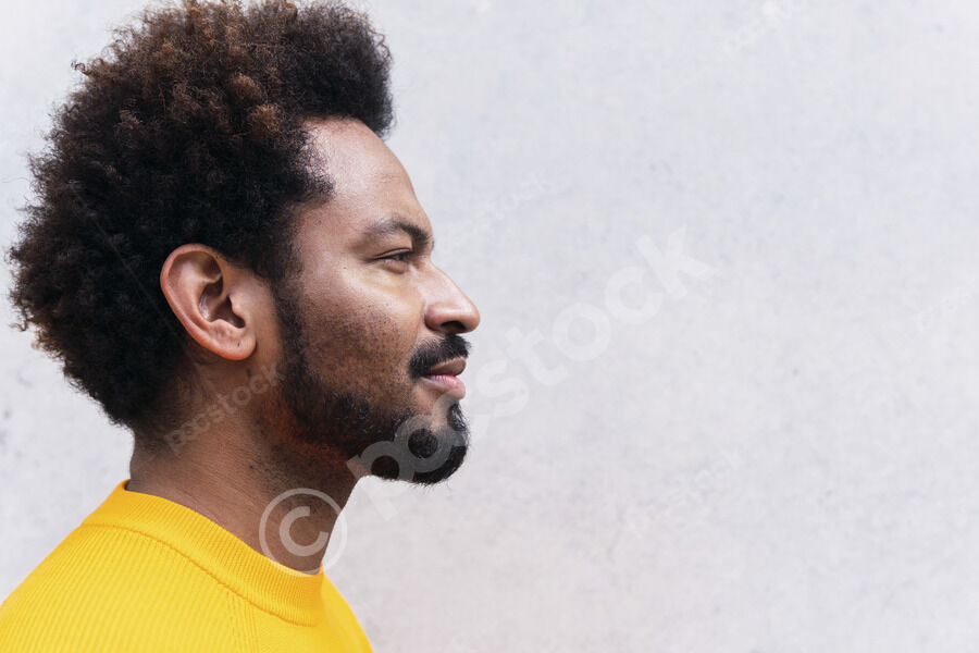 Hispanic man with hand in pocket walking on footpath by black wall during daytime