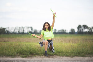 Black woman with dreadlocks and hands on face standing in front of her friends making crown hands while standing in park during daytime