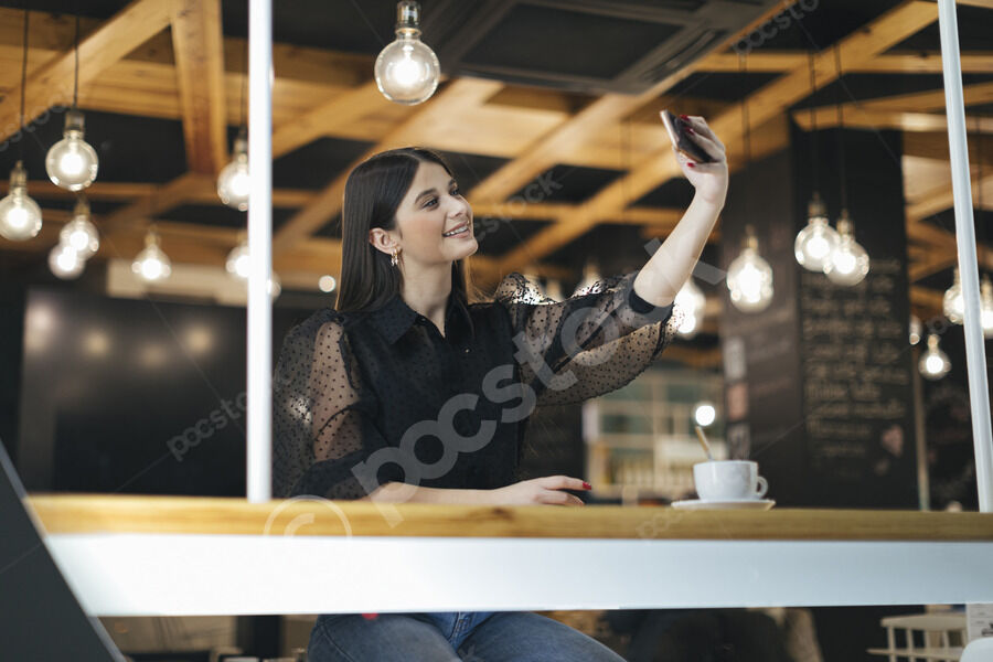 Black woman with vitiligo taking selfie sitting in driver seat of car during daytime
