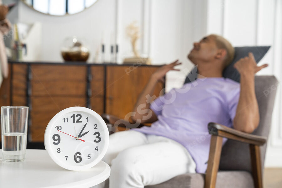 Black man with short afro having phone call while sitting on bench with scooter in front of building in city during daytime