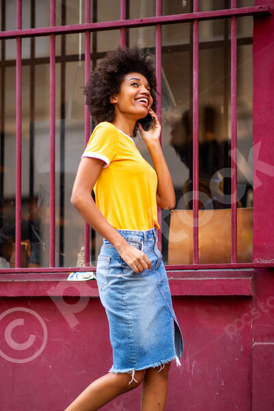 Cheerful Black man holding smartphone sitting on stairs outdoors during daytime