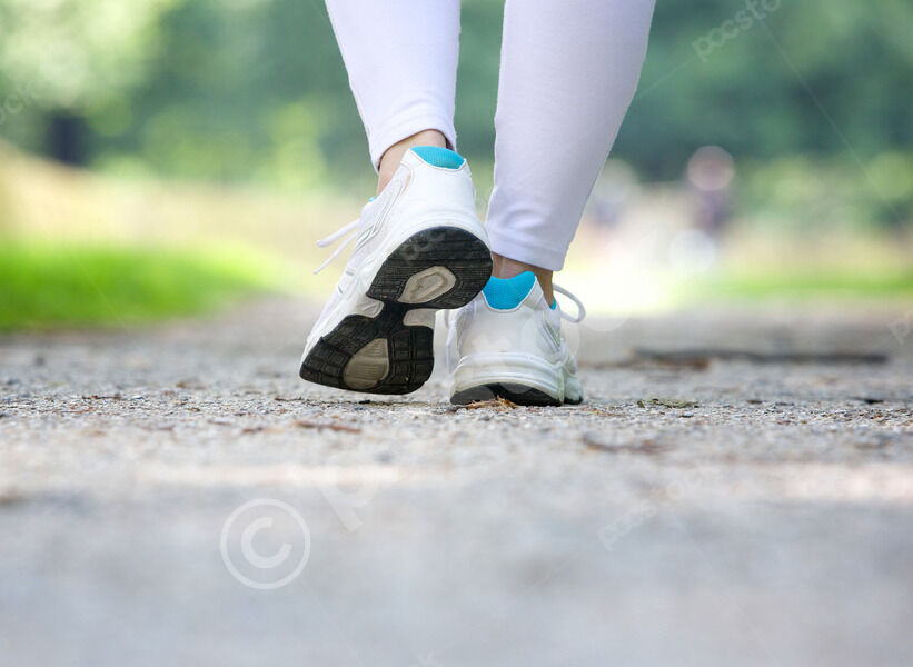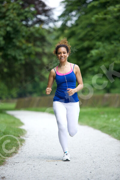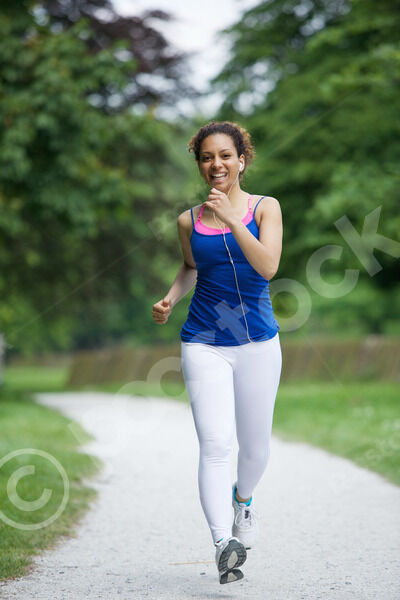 Smiling Black woman looking away doing legs stretching in park on sunny day