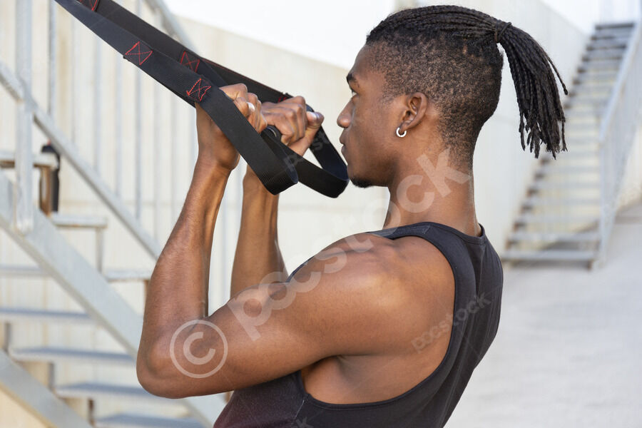 Black businessman wearing sunglasses looking away while standing and leaning on concrete railing on street during daytime