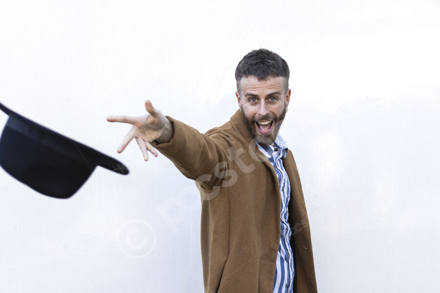 Black businessman holding flower bouquet standing in front of flower bush outdoors during daytime