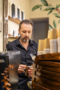 Cropped image hands of Black man repairing the ring with missing diamond in shop
